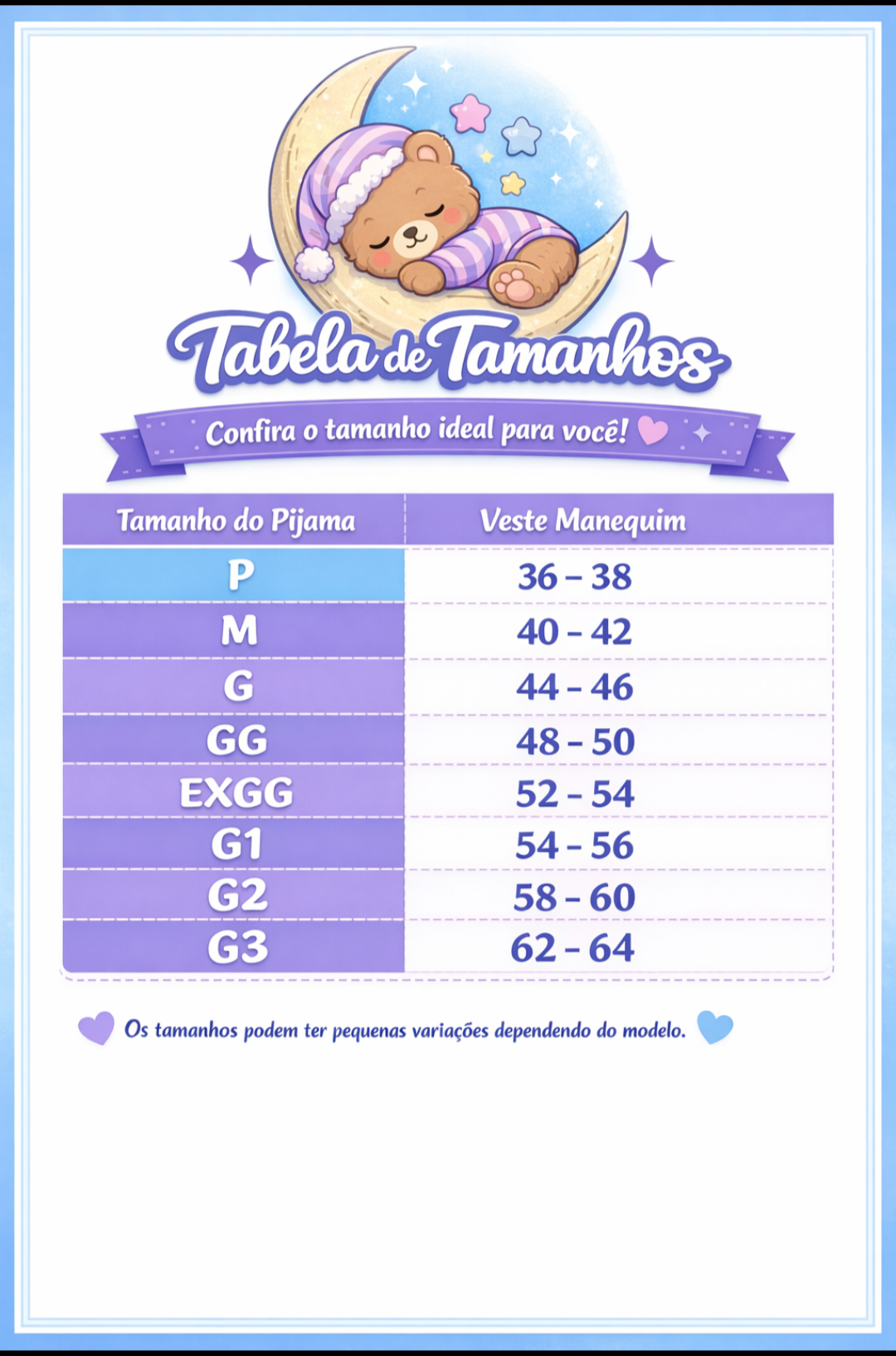 Tabela de Medidas: Escolha o tamanho ideal com facilidade!